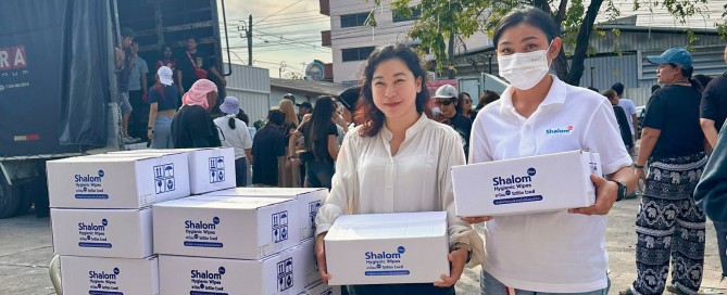 Shalomplus ขอร่วมเป็นส่วนหนึ่งในการช่วยเหลือน้ำท่วมใต้ ผลิตภัณฑ์ Shalom Plus ส่งมอบผลิตภัณฑ์ ผ้าเช็ดแทนการอาบน้ำ เพื่อเพิ่มความสะดวกให้กับผู้ประสบภัยและเจ้าหน้าที่หน้างาน ที่ไม่สะดวกอาบน้ำตามปกติ ณ จุดรับบริจาคเจนนี่ได้หมดถ้าสดชื่น ปากซอยสายไหม 73